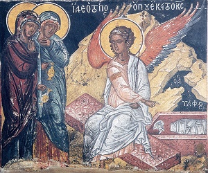 Οι μυροφόρες γυναίκες, μεταξύ των οποίων κατονομάζονται η Μαρία η Μαγδαληνή, η Μαρία του Ιακώβου, η Ιωάννα και η Σαλώμη, προερχόμενες από τη Γαλιλαία, προσέρχονται στον τάφο τις πρώτες ώρες μετά την ημέρα του Σαββάτου, δηλαδή τις πρώτες πρωινές ώρες της Κυριακής. Οι στρατιώτες, οι εντεταλμένοι για τη φύλαξη του τάφου, παρά το γεγονός ότι εξετέλεσαν με μεγάλη προσοχή το καθήκον τους, έντρομοι τώρα δεν μπορούν να εξηγήσουν και να ερμηνεύσουν το γεγονός, πώς ο τάφος τελικά βρέθηκε κενός. Έτσι άρχισε να δημιουργείται μια παράδοση διαφόρων λογικών ερμηνειών περί του κενού τάφου. Πάντως, αυτό που παραμένει αναμφισβήτητο γεγονός από όλους, από τους στρατιώτες, το λαό, τους Αρχιερείς και τα μέλη του Μεγάλου Συνεδρίου, ακόμη και από τις μυροφόρες γυναίκες και τους ...