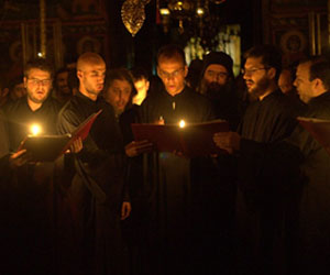 Παλιά συνήθεια ήταν οι ερημίτες μοναχοί που είχαν απομονωθεί καθ' όλη τη διάρκεια της Μεγάλης Τεσσαρακοστής στην έρημο να συνάγονται την Κυριακή των Βαΐων στα Κυριακά των Σκητών για να συνεορτάσουν τα σωτήρια Πάθη και την Ανάσταση. Εις μνήμην αυτής της παλαιάς παραδόσεως ψάλλεται μέχρι σήμερα στον Εσπερινό της Κυριακής των Βαΐων το ιδιόμελο: «Σήμερον ἡ χάρις τοῦ ἁγίου Πνεύματος, ἡμᾶς συνήγαγε, καὶ πάντες αἴροντες, τὸν Σταυρόν σου λέγομεν, Εὐλογημένος ὁ ἐρχόμενος, ἐν ὀνόματι Κυρίου Ὡσαννὰ ἐν τοῖς ὑψίστοις». Ο βυζαντινός χορός «Τρόπος» ψάλλει το ιδιόμελο σε αργό μέλος Πέτρου Φιλανθίδη, ήχος πλ. β'. %akjakalalayata%