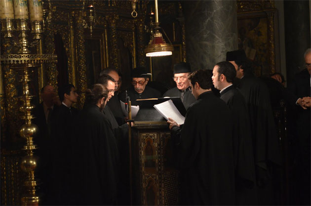 Στο πατριαρχικό ναό χοροστατεί ο Πατριάρχης σε όλες τις ακολουθίες σύμφωνα με τη τυπική τάξη της Μεγάλης του Χριστού Εκκλησίας. Αναγινώσκει τον Εξάψαλμο και τα άλλα αναγνώσματα τα ανήκοντα στον Προεστώτα. Οι ψάλτες από τη θέση τους αποδίδουν «αργώς και μετά μέλους» τα ορισμένα τροπάρια. Στους αίνους των ακολουθιών του Νυμφίου ψάλλεται αργό το «Αινείτε» από τον αριστερό χορό, ενώ ο Πατριάρχης κατέρχεται του δεσποτικού θρόνου και μεταβαίνει στο δεξιό κλίτος του Πατριαρχικού ναού για να προσκυνήσει τη «Στήλη της Φραγγελώσεως» και την εικόνα του Νυμφίου Χριστού, που είναι δίπλα στη Στήλη. Ο Πατριάρχης επιστρέφει στο σολέα ευλογεί τον λαό και ανέρχεται στο θρόνο. Ο Πατριαρχικός ναός είναι το πρότυπο της τάξης και της ψαλμωδίας για τη Μεγάλη Εβδομάδα με το ...