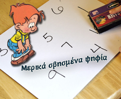 Για μαθητές Δ΄ τάξης Ο Γιώργος είχε ένα χαρτάκι, στο οποίο ήταν γραμμένοι δύο τριψήφιοι αριθμοί, μόνο που κάποια ψηφία έσβησαν. Θυμόταν όμως ότι το άθροισμα των ψηφίων του ενός αριθμούς ήταν όσο το άθροισμα των ψηφίων του άλλου. Ποιο από τα παρακάτω χαρτάκια περιέχει τους αριθμούς του Γιώργου; Βέβαια μπορείς να κάνεις τυχαία κλικ πάνω στα χαρτάκια... αλλά αυτό δεν θα είναι έξυπνο εκ μέρους σου. Αν κάνεις κλικ μετά από μαθηματική σκέψη, θα έχεις κέρδος, έστω κι αν κάνεις λάθος. Εμπρός λοιπόν...
