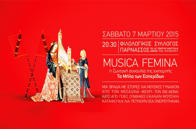 Το Σάββατο 7 Μαρτίου, στις 8.30 το βράδυ, στον Φιλολογικό Σύλλογο Παρνασσός, θα πραγματοποιηθεί μια βραδιά αφιερωμένη σε γυναίκες μουσικούς, σε γυναίκες που έζησαν από τον Μεσαίωνα, μέχρι τον 20o αιώνα : «Musica Femina». Hildegard Ηγουμένη του Bingen, Κοντέσσα Beatritz de Dia, Barbara Strozzi, Anna Maria dal Violin, Élisabeth de la Guerre, Anna Maria Mozart, Fanny Mendelssohn, Cécile Chaminade, Clara Schumann, Alma Mahler, Lili και Nadia Boulanger: είναι μερικές μόνο από τις γυναίκες που καταγράφονται στα λεξικά μουσικής. Ποιες ήταν; Τι τις ενέπνευσε; Πώς ήταν η ζωή τους σε κοινωνίες, όπου το δικαίωμα στη μουσική δημιουργία ήταν προνόμιο ανδρικό; Κάτω από ποιές συνθήκες έκαναν μουσική; Κατάφεραν να δημιουργήσουν όσα ονειρεύτηκαν και να σταθούν αυτόνομα; Μια βραδιά με ιστορίες και συνθέσεις γυναικών από ...