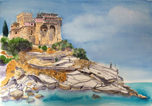 Συνεχίζεται η Έκθεση ζωγραφικών έργων του βρετανού ζωγράφου Tim Vyner στην Αγιορειτική Εστία. Όσοι βρεθούν στους εκθεσιακούς χώρους της Αγιορειτικής Εστίας στον α΄ όροφο του κτιρίου Νεδέλκου θα έχουν την μοναδική ευκαιρία να δουν από κοντά έργα ζωγραφικής (ακουαρέλες), ψηφιακά έργα σε iPad καθώς και πολλά σκίτσα και προσωπικά αντικείμενα του καλλιτέχνη που χρησιμοποίησε κατά την διάρκεια των ταξιδιών του στο Άγιον Όρος. Μια μοναδική εμπειρία τόσο για τον ίδιο τον καλλιτέχνη όσο και για τους επισκέπτες της Έκθεσης οι οποίοι έχουν την ευκαιρία να γίνουν κοινωνοί μίας σύγχρονης αποτύπωσης του καθημερινού βίου μιας διαφορετικής πολιτείας. Ο ίδιος ο ζωγράφος περιγράφει την εμπειρία του αυτή στο εκτενές κείμενο του που περιέχεται στον ομώνυμο κατάλογο που συνοδεύει την Έκθεση, μικρό απόσπασμα του οποίου ...