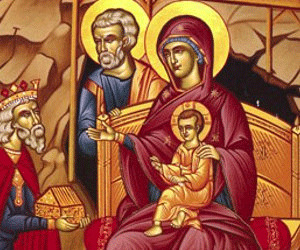 Η προσκύνηση των Μάγων Ἤκουσαν οἱ ποιμένες των Ἀγγέλων ὑμνούντων τήν ἔνσαρκον Χριστοῦ παρουσίαν, καί δραμόντες ὡς πρός ποιμένα, θεωροῦσι τοῦτον ὡς ἀμνόν ἄμωμον ἐν τῇ γατρί Μαρίας βοσκηθέντα, ἦν ὑμνοῦντες εἶπον: Ερμηνεία Το θέμα των ποιμένων στη Γέννηση του Χριστού εδώ παρουσιάζεται με πολύ γλαφυρό και παραστατικό τρόπο. Οι ποιμένες ακούνε το «Δόξα εν υψίστοις Θεώ και επι γης ειρήνη ευδοκία» και χωρίς καμιά αμφιβολία τρέχουν σαν άνθρωποι που γνωρίζουν από γέννες προβάτων σε έναν άλλο ποιμένα να δούνε μια ακόμα γέννα και βλέπουν τον Χριστό σαν αθώο αρνάκι, που βόσκησε στην κοιλιά της Παρθένου Μαρίας. Η γέννα όμως αυτή ήταν πολύ διαφορετική από τις άλλες, γι αυτό και ο υμνογράφος βάζει στο στόμα των ποιμένων τους ανάλογους χαιρετισμούς: Χαῖρε, ἀμνοῦ καί ...
