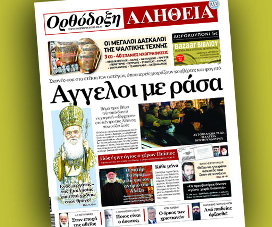 Κυκλοφορεί από την Τετάρτη 18 Φεβρουαρίου στα περίπτερα όλης της χώρας η νέα μηνιαία θρησκευτική εφημερίδα Ορθόδοξη Αλήθεια. Το πρώτο φύλλο συνοδεύεται από 3 cd με 40 σπάνιες ηχογραφήσεις των μεγάλων δασκάλων της ψαλτικής τέχνης (Θεοδοσόπουλος, Περιστέρης, Καράς, Σύρκας, Χατζημάρκος κλπ) και κουπόνι 5 ευρώ για αγορά βιβλίων. Η εφημερίδα κοστίζει (μαζί με τα δώρα) 3 ευρώ. Εκδίδεται από την «Δημοκρατικός τύπος ΑΕ», με εκδότη τον Ιωάννη Φιλιππάκη και διευθυντή τον Δημήτρη Ριζούλη. Αρθρογράφοι είναι μεταξύ άλλων οι: π. Γεώργιος Μεταλληνός, π. Ανανίας Κουστένης, Μητροπολίτης Μαρωνείας Παντελεήμων, Μανώλης Μελινός, Κωνσταντίνος Χολέβας, κ.α. Παράλληλα μια ομάδα 10 δημοσιογράφων παρουσιάζει πλούσια ρεπορτάζ. Σε αυτό το φύλλο υπάρχουν θέματα για: Την εισήγηση αγιοποίησης του γέροντα Παίσιου, τα νυχτερινά συσσίτια της Εκκλησίας στους αστέγους, ...