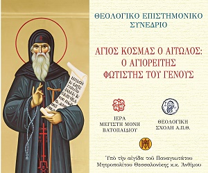 AΓΙΟΣ ΚΟΣΜΑΣ Ο ΑΙΤΩΛΟΣ: Ο ΑΓΙΟΡΕΙΤΗΣ ΦΩΤΙΣΤΗΣ ΤΟΥ ΓΕΝΟΥΣ ΘΕΣΣΑΛΟΝΊΚΗ 9-10 ΔΕΚΕΜΒΡΙΟΥ 2014 ΤΡΙΤΗ 9.12.2014 18.00 Προσφωνήσεις - Χαιρετισμοί 18.20 Κήρυξη της έναρξης των εργασιών του Συνεδρίου από τον Παναγιώτατο Μητροπολίτη Θεσσαλονίκης κ. Άνθιμο 18.30 Εναρκτήρια εισήγηση του Πανοσιολ. Αρχιμ. κ. Εφραίμ, Καθηγουμένου της Ι.Μ.Μ. Βατοπαιδίου, "Ο άγιος Κοσμάς ο Αιτωλός ως Αγιορείτης" 19.00 Θεατρική Παράσταση: "Κοσμάς ο Αιτωλός, ο άγιος που σκόρπιζε φως κι ελπίδα". Σενάριο: Χριστιανική Εστία Πατρών. Σκηνοθεσία: Κουτσόπουλος Ανδρέας - Κονέ Αικατερίνη. Τους ρόλους ερμηνεύουν μαθητές Γυμνασίου και Λυκείου των Εκπαιδευτηρίων "Απόστολος Παύλος" Ισθμού Κορίνθου 20.00 Κέρασμα ΤΕΤΑΡΤΗ 10.12.2014 6.30 Όρθρος - Θεία Λειτουργία στον Ι.Ν. Πάντων των εν Θεσσαλονίκη Αγίων, Πυλαίας. Θα ...
