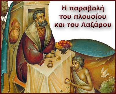 Ο Κύριος μιλούσε με αυστηρότητα για την κακή χρήση του πλούτου. Έλεγε ότι κανένας δεν μπορεί να δουλεύει σε δυο αφεντικά, γιατί ή θα μισήσει τον ένα και θα αγαπήσει τον άλλον ή θα προσκολληθεί στον ένα και θα περιφρονήσει τον άλλο. Δεν μπορεί ο άνθρωπος να είναι δούλος και στον Θεό και στο χρήμα. Για να δείξει μάλιστα ότι τα χρήματα μπορεί να οδηγήσουν τον άνθρωπο στην καταστροφή και τον αιώνιο θάνατο είπε την εξής παραβολή: Κάποιος άνθρωπος ήταν πλούσιος. Φορούσε ρούχα πολυτελή και κάθε μέρα στο τραπέζι του υπήρχαν πλουσιοπάροχα όλα τα αγαθά. Έξω από την αυλή του σερνόταν ένας πολύ φτωχός άνθρωπος, που το όνομά του ήταν Λάζαρος. Το σώμα του ήταν γεμάτο πληγές. Έρχονταν τα σκυλιά και ...
