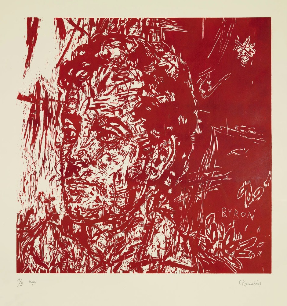 Απ’ τους άπιστους Φράγκους λευτεριά μη ζητάτε! Εκεί ζουν ηγεμόνες που πουλούν κι αγοράζουν. Με δικό σας τουφέκι και σπαθί πολεμάτε! Αυτού θαβρετ’ ελπίδα κι ό,τι θέλουν ας τάζουν. Ζυγός Τούρκου, με Φράγκου πονηριά σαν ταιριάσουν Την ασπίδα, όσο να’ ναι δυνατή, θα τη σπάσουν. Λόρδος Βύρων. «Ο Βύρων στην Κεφαλονιά», είναι ο τίτλος της έκθεσης του ζωγράφου Γιάννη Ψυχοπαίδη που φιλοξενείται αυτήν την περίοδο στο Μουσείο Μπενάκη, στο Κεντρικό Κτήριο (Κουμπάρη 1) και θα διαρκέσει έως τις 25 Οκτωβρίου 2014. Byron III, 2014, ξυλογραφία 100Χ100 εκ Ποια είναι όμως η σχέση της ποίησης με τη ζωγραφική; «...Η ροή της ποίησης και αυτή της ζωγραφικής είναι σαν δυο ανυπότακτα ποτάμια που τρέχουν παράλληλα, το κάθε ένα με τα δικά του νερά, τις δικές του πηγές, που όμως συνδέονται στο ...