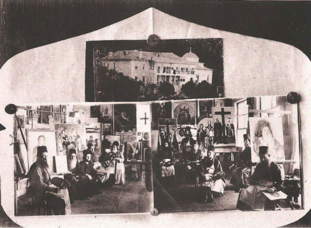 H δεύτερη μεγαλύτερη συγκέντρωση ζωγράφων μετά τiς Καρυές εντοπίζεται στη Σκήτη Αγίας Άννας, όπου διακρίθηκαν τέσσερις αγιογραφικοί οίκοι. Oαρχαιότερος ειναι οι Θεοφιλαίοι με έδρα την καλύβη των Εισοδίων της Θεοτόκου κοντά στο Κυριακό καί ιδρυτή τον μοναχό Θεόφιλο Μαδυτινό (1798-1918), που ήρθε στη Σκήτη το 1826. Συνεχιστές ήταν ό μοναχός Χερουβείμ Καπετανάκης (+1910) με μαθητεία στους Ιωσαφαίους και ο μοναχός Γαβριήλ Λαμπής ο Πνευματικός. Δεύτερη συνοδεία σχημάτισαν οι τέσσερις κατά σάρκα αδερφοί Καρτσωναίοι με έδρα την καλύβη του Αγίου Γεωργίου πλησιόχωρα στο Κυριακό . Αρχαιότερος ήταν ό Γαβριήλ πού είχε μαθητεύσει στους Θεοφιλαίους και εγκαταστάθηκε στην καλύβη του Αγίου Γεωργίου το 1896, για ν' ακολουθήσουν τα αδέρφια του στα 1904. Μέλη τής συνοδείας ήταν οι μοναχοί Θεόφιλος Μαδυτινός (+1918) και Παντελεήμων ...