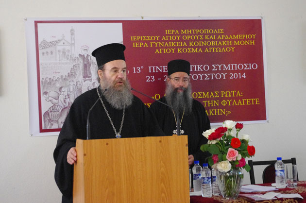 Ολοκληρώθηκαν οι εορταστικές εκδηλώσεις για την μνήμη του Αγίου Κοσμά του Αιτωλού στην Ιερά Μητρόπολη Ιερισού, Αγίου Όρους και Αρδαμερίου με αφορμή τα 300 χρόνια από την γέννηση του Εθναποστόλου και Ισαποστόλου Κοσμά του Αιτωλού. Το πρόγραμμα των εκδηλώσεων έλαβε χώρα στην Ιερά Μονή Αγίου Κοσμά του Αιτωλού Αρναίας παρουσία του Μητροπολίτου Ιερισσού Αρδαμερίου και Αγίου όρους κ Θεοκλήτου, κληρικών και λαικών. Κεντρικοί ομιλητές της εκδήλωσης ήταν η καθηγήτρια της Φιλοσοφικής Σχολής Αθηνών Μαρία Μαντούβαλου η οποία ανέπτυξε το θέμα: «Η αναγκαιότητα της παρουσίας του Αγίου Κοσμά σήμερα» και ο Αρχιμ. Χρυσόστομος Μαιδώνης, Πρωτοσύγκελος της Ιεράς Μητροπόλεως Ιερισσού, ο οποίος μίλησε με θέμα:« Η προάσπιση της αργίας της Κυριακής, η αιτία του μαρτυρίου του Αγίου Κοσμά». Το Συμπόσιο έτυχε της μέριμνας και ...