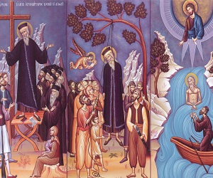 Δύο σεβαστοί Γέροντες Λαυριώτες την Τρίτη της Διακαινησίμου περί το έτος 1982, μετά την Λιτανεία και τον Αγιασμό που γίνεται στον αρσανά της Μεγίστης Λαύρας, πήραν το καραβάκι της Ιερισσού και απεβιβάσθησαν στον Αρσανά της Μονής Χιλανδαρίου, και κατόπιν με τρακτέρ που έστειλεν η Μονή μετεφέρθησαν σ’ αυτήν για προσκυνηματικούς λόγους, όπου και διανυκτέρευσαν. Ο μακαριστός σήμερα Ηγούμενος και τότε Ιερομόναχος Παΐσιος, κατά πολύ ενάρετος και αγωνιστής, τους φιλοξένησε φιλοφρόνως με πολλή αγάπη. Το βράδυ εκεί πού συζητούσαν, τα έφερεν ο λόγος και για τους αφανείς ασκητές του Αγίου Όρους, πού τους τελευταίους καιρούς σχεδόν εξέλειπαν. Λαβών αφορμήν εκ της συζητήσεως ο Σέρβος Ιερομόναχος είπε στους Λαυριώτες Πατέρες τήν έξης διήγηση: «Όταν ήταν νεώτερος, μαζί με έναν άλλο Μοναχό εστάλησαν υπό της Μονής στα σύνορο ...