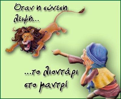 Όλοι ξέρουμε το λιοντάρι, τον βασιλιά των ζώων κι όλοι βέβαια ξέρουμε πως δεν μπορούμε να τα βάλουμε μαζί του, τουλάχιστον μόνοι μας χωρίς τη βοήθεια άλλων ειδικών βέβαια. Εξάλλου, ποτέ δεν πρέπει να «ερεθίζουμε και να προκαλούμε» τους δυνατότερους από μας, γιατί θα πληρώσουμε ακριβά τις συνέπειες της λανθασμένης συμπεριφοράς μας, που φανερώνει την επιπολαιότητά μας. Έτσι την έπαθε κι ο γεωργός της ιστορίας μας: Μια μέρα είδε να μπαίνει στο αγρόκτημά του, κατά λάθος βέβαια, ένα λιοντάρι. - Ευκαιρία να το πιάσω, σκέφτηκε χαμογελώντας κι αμέσως έκλεισε την πόρτα της αυλής. Και μάλλον έπραξε δίχως σύνεση, γιατί μόλις το λιοντάρι ένιωσε πως δεν είχε δρόμο να ξεφύγει και δεν μπορούσε να βγει πια έξω, όρμησε στα πρόβατα του γεωργού και ...