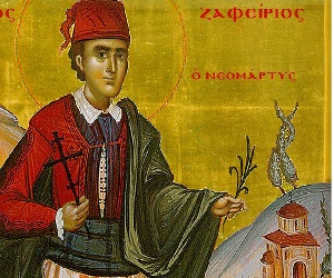 Εποιήθη εν Αγίω Όρει του Αθωνος υπό Αθανασίου ιερομονάχου Σιμωνοπετρίτου, Υμνογράφου της Αγίας του Χριστού Μεγάλης Εκκλησίας. * Άγιον Όρος Αθως * ιβια΄ * 2011 * ΤΗ ΙΑ΄ ΤΟΥ ΜΗΝΟΣ ΙΟΥΝΙΟΥ ΜΝΗΜΗ ΤΟΥ ΑΓΙΟΥ ΕΝΔΟΞΟΥ ΝΕΟΜΑΡΤΥΡΟΣ ΖΑΦΕΙΡΙΟΥ * * * ΕΙΣ ΤΟΝ ΕΣΠΕΡΙΝΟΝ Ιστώμεν στίχους Ϛ΄ και ψάλλομεν στιχηρά προσόμοια. Ήχος.α΄.Των ουρανίων ταγμάτων. Της εν Χριστώ ευσεβείας, μάρτυς Ζαφείριε, ακλόνητος εδείχθης, και στερρός θεολόγος, αισχύνας θεοσόφως τους ασεβείς, τους μεγάλως βιάζοντας, σέ εξομόσαι και Αγαρ σκοτοειδούς, λατρευτήν πιστόν γενέσθαι σε. Ορθοδοξίας το γάλα, πιών μακάριε, καί εν τώ Όρει Αθω, διδαχθείς τα πρακτέα, ουδόλως εσαλεύθης εξ απειλών, και πολλών υποσχέσεων, εκ των θελόντων ελκύσαί σε δυσσεβώς, πρός Μωάμεθ την απώλειαν. Ούτε νεότητος κάλλη, ουδέ προσπάθεια, πρός ηδονάς του βίου, νεομάρτυς Κυρίου, εξίσχυσαν πλανήσαι και εις βυθόν, ασεβείας κατάξαι σε, αλλ’ ως αφροί διελύθησαν ασεβών, αι παγίδες και τα ένεδρα. Της παρανοίας Μωάμεθ, πλάνην εξήλεγξας, ενώπιον τυράννων, τού Σταυρού τη ...