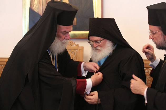 Ο Καθηγούμενος της Ιεράς Μεγίστης Μονής Βατοπαιδίου, αρχιμ. Εφραίμ, μίλησε στο Μέγα Συνοδικό της Μονής μετά το πέρας της πανηγυρικής και πατριαρχικής Θείας Λειτουργίας για τους εορτασμούς επί τη επετείω των 300 ετών από της κοιμήσεώς του Αγίου Γερασίμου Παλλαδά. Κυριακή 5/18 Μαΐου 2014 Μακαριώτατε Πάπα και Πατριάρχα, Σεβασμιώτατε Μητροπολίτα Μιλήτου κ. Απόστολε, εκπρόσωπε της Αυτού Παναγιότητος του Οικουμενικού Πατριάρχου κ.κ. Βαρθολομαίου, Σεβασμιώτατε Αρχιεπίσκοπε Πέλλης κ. Φιλούμενε, εκπρόσωπε του Πατριαρχείου Ιεροσολύμων, Θεοφιλέστατε Επίσκοπε Λήδρας κ. Επιφάνιε, εκπρόσωπε της Εκκλησίας Κύπρου, Σεβασμιώτατοι Άγιοι Αρχιερείς, Άγιοι Καθηγούμενοι των Ιερών Μονών του Αγίου Όρους και Σεβαστή Ιερά Κοινότης, Ελλογιμώτατε Κύριε Πρόεδρε του Συλλόγου Ωφελίμων Βιβλίων, Αγαπητοί εν Χριστώ Πατέρες και αδελφοί προσκυνητές, Ας δοξολογήσουμε και ας ευχαριστήσουμε την Κυρία Θεοτόκο και τον Άγιο Γεράσιμο Παλλαδά που η Χάρις του Αγίου Πνεύματος μας συνήγαγε επί τω αυτώ, εδώ στην ...
