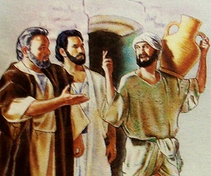Ερώτηση. Ποιός είναι, κατά το Ευαγγέλιο, αυτός που βαστάζει, μέσα στην πόλη, το κεράμιο του ύδατος, και γιατί ύδατος, με τον οποίο οι μαθητές που στέλνονται από τον Χριστό συναντώνται και διατάζονται να τον ακολουθούν; Ποιός είναι ο οικοδεσπότης; Και γιατί οι Ευαγγελιστές δεν αναφέρουν το όνομά του; Ποιο είναι το ανώγαιο το μεγάλο, όπου έχει στρωθεί τραπέζι και στο οποίο τελείται το φρικτό μυστήριο του Θείου Δείπνου; Απάντηση. Όχι μόνο του ανθρώπου το όνομα δεν αναφέρει η Γραφή, προς τον οποίο έστειλε ο Χριστός τους δύο μαθητές για να ετοιμάσουν το Πάσχα, αλλά και της πόλης στην οποία στάλθηκαν. Έτσι, σε μια πρώτη ερμηνευτική προσπάθεια, νομίζω ότι με την πόλη δηλώνεται ο αισθητός κόσμος, ενώ ο άνθρωπος συμβολίζει γενικά το ...