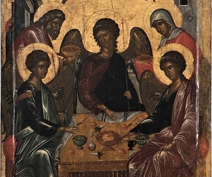 «Η φιλοξενία του Αβραάμ» η οποία συμβολίζει την Αγία Τριάδα. Προέλευση Ζάκυνθος, δημιουργία από κρητικό εργαστήριο, 15ος αιώνας, 97×71,5 εκ. Βυζαντινό και Χριστιανικό Εικονικό Μουσείο. (Επιμέλεια Στέλιος Κούκος) Όσιος Νικήτας ο Στηθάτος – Πρώτη εκατοντάδα πρακτικών κεφαλαίων 1. Τέσσερις νομίζω είναι οι αιτίες, οι όποιες στα πλαίσια της τέλειας τριάδας των αρετών-πίστεως, ελπίδας και αγάπης- παρακινούν να γράφει τα ωφέλιμα εκείνον που ήδη ξεπέρασε το μέσο της αρχής και έφτασε προς την τριάδα της μυστικής θεολογίας. Πρώτη αιτία είναι η ελευθερία, η ίδια δηλαδή η απάθεια της ψυχής, η οποία με την κοπιαστική εργασία προόδευσε στη φυσική θεωρία της κτίσεως και από εκεί εισήλθε στο γνόφο της θεολογίας. Δεύτερη είναι η καθαρότητα του νου που προήλθε από τα δάκρυα και την προσευχή, από τον οποίο ...