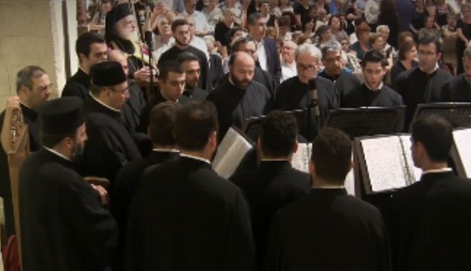 Χορός Ψαλτών «Οι Κρήτες Μαΐστορες» υπό την διεύθυνση του Άρχοντος Υμνωδού της Αγίας του Χριστού Μεγάλης Εκκλησίας Αντωνίου Πλαΐτη ψάλει το Δοξαστικόν των Εσπερίων των Πρωτοκορυφαίων Πέτρου και Παύλου. Μέλος Πέτρου Λαμπαδαρίου, ήχος δ΄.