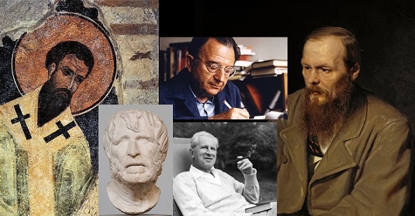 Από αριστερά: Μ. Βασίλειος, Ησίοδος, Έρ. Φρομ (πάνω), Χ. Μαρκούζε, Φ. Ντοστογιέφσκι. Στην εποχή της ανάδειξης της οικονομίας, μέσα από εκείνο το Είναι και έχειν, όπου η ύπαρξίς μας ταυτίζεται με τα αγαθά του κόσμου τούτου, με τον Homo economicus, για τον οποίο συχνά εσχάτως μιλούμε, με τη Νέα Τάξη και τους άξονες της οικονομίας να μας συντρίβουν πολλές φορές με τον νεοφιλελευθερισμό που συνοδεύει την Παγκοσμιοποίηση και την υφέρπουσα παγκόσμια τυραννία που την ακολουθεί εφιαλτικώς, αισθανόμαστε πως ζούμε εν κινδύνω, με εκείνη την επανερχόμενη απειλή της οικονομικής κατάρρευσης και της εξάρτησης και οικονομκού ελέγχου που προκύπτει. Κι έτσι, ενώ μιλούμε για την κρίση της πανδημίας, μιλούμε ξανά για την κρίση της οικονομίας. Και όμως θα πρέπει να επαναδιατυπώσουμε μια νέα Φιλοσοφία ...