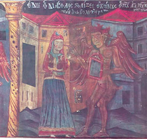Στο τέλος του 17ου, το 18ου και το 19ου αι. στην ευρύτερη περιοχή της Β. Ελλάδας παρατηρείται μια μεγάλη δημογραφική, εμπορική και παιδευτική άνθηση, ιδιαίτερα μετά τη συνθήκη του Κάρλοβιτς (1699), που παρείχε προνόμια στους χριστιανούς κατοίκους της Οθωμανικής αυτοκρατορίας. Στα πλαίσια της θρησκευτικής ανοχής, εκκλησίες ανακαινίζονται αλλά και κτίζονται, με συνέπεια να διακοσμούνται με τέμπλα και εικόνες. Μια άνθηση που δεν παρατηρείται μόνο στις μεγάλες πόλεις αλλά και στους αγροτικούς πληθυσμούς και που φέρει μια ανανέωση και στους τρόπους με την επιστροφή σε παλαιότερα πρότυπα και όχι μόνον. «Εδώ ο διάβολος στολίζει εκείνους όπου αγαπούν την διαβολική μεταμόρφωσιν». Τοιχογραφία από γυναικωνίτη της Αγίας Μαρίνας Κίσσού (1802). Μια γυναίκα με τη φορεσιά της εποχής βάφεται ενώ ο διάβολος της κρατάει τον καθρέπτη. Πηγή: «η λαϊκή τέχνη ...