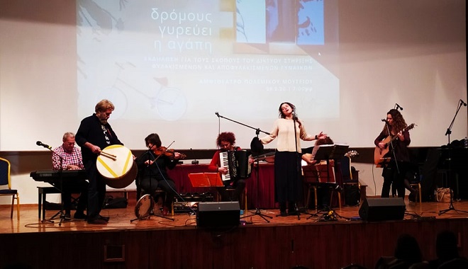 «Δρόμους γυρεύει η αγάπη» εκδήλωση για τους σκοπούς του Δικτύου Στήριξης Φυλακισμένων και Αποφυλακισμένων Γυναικών, η οποία διοργανώθηκε από τις εκδόσεις «εν πλω» την Παρασκευή 28 Φεβρουαρίου 2020 στο Αμφιθέατρο Πολεμικού Μουσείου Αθηνών.