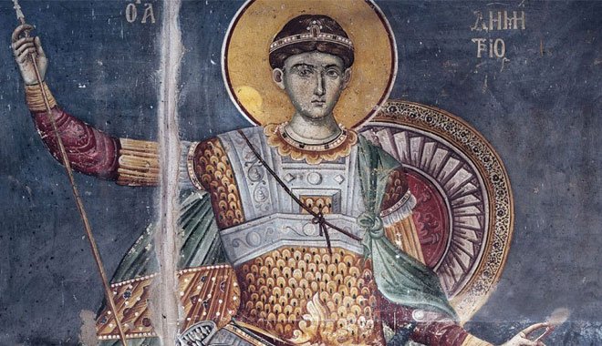 Άγιος Μεγαλομάρτυρας Δημήτριος ο Πολιούχος της Θεσσαλονίκης. «Σήμερον συγκαλείται ημάς, του Αθλοφόρου η παγκόσμιος πανήγυρις. Δεύτε ουν φιλέορτοι, φαιδρώς εκτελέσωμεν την μνήμην αυτού…». Από το Δοξαστικό του εσπερινού της εορτής του αγίου Δημητρίου Σήμερον Δημητρίου η παγκόσμιος πανήγυρη! Η παγκόσμιος χαρά και χάρη του Αθλοφόρου! Ευφρανθείτε! Μαζί σας χαίρει και ευφραίνεται η μεγαλόπολη Θεσσαλονίκη! Η οικουμένη! Η Θεσσαλονίκη, σήμερα, με τις ευλογίες και τη χάρη του Πολιούχου της γίνεται οικουμένη! Πρωτεύουσά της οικουμένης! Και γίνονται όλα ένα! Ο υμνογράφος Γεώργιος Σικελιώτης προτρέπει την ίδια την πόλη Θεσσαλονίκη: «Ευφραίνου εν Κυρίω πόλις Θεσσαλονίκη, αγάλλου και χόρευε, πίστει λαμπροφορούσα, Δημήτριον τον πανένδοξον αθλητήν, και Μάρτυρα της αληθείας, εν κόλποις κατέχουσα ως θησαυρόν…»! Ας κρατήσουν, λοιπόν, οι χοροί και οι αγαλλιάσεις! Η σημερινή, όμως, πανήγυρη και χαρά δεν είναι μονοήμερη ή εφήμερη, αφού η Θεσσαλονίκη, ...