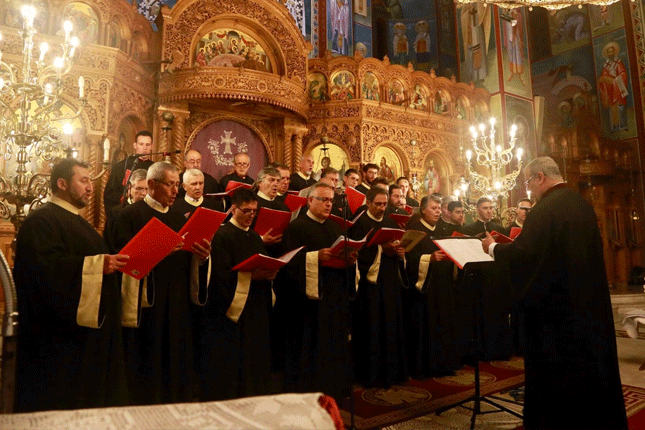 Ο βυζαντινός χορός του Συλλόγου Ιεροψαλτών της Ι. Μ. Φλωρίνης, Πρεσπών και Εορδαίας «Άγιος Ιωάννης ο Δαμασκηνός» με χοράρχη τον Βασίλειο Δόντσιο ερμηνεύει ύμνους της περιόδου της Μεγάλης Εβδομάδος στη συνάντηση των Πρωτοψαλτών της Μακεδονίας με τίτλο «Ψάλλοντας τα μεγαλεία του Θεού» στον Ιερό Ναό Κοιμήσεως Θεοτόκου 40 Εκκλησιών Θεσσαλονίκης.