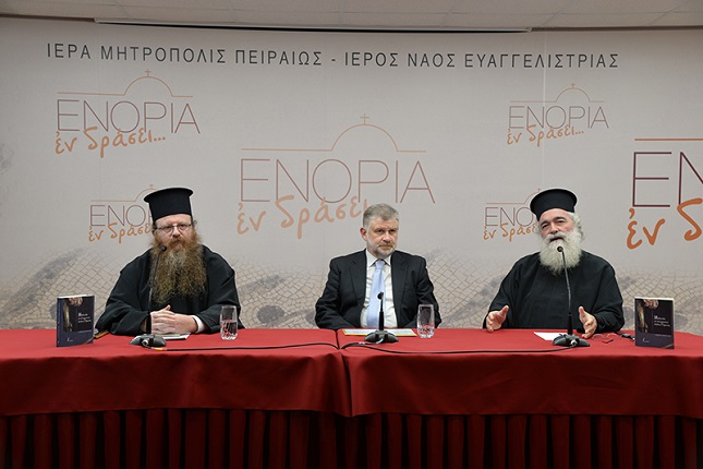 Ο Κωνσταντίνος Κορναράκης, Καθηγητής της Θεολογικής Σχολής του Πανεπιστημίου Αθηνών και ο Αρχιμανδρίτης Δανιήλ Ψωίνος, Θεολόγος, Ιεροκήρυκας Καθεδρικού Ιερού Ναού Αγίας Τριάδος Πειραιώς, παρουσιάζουν το νέο βιβλίο του Πρωτοπρ. Γεωργίου Δορμπαράκη των εκδόσεων «ακολουθείν». Την εκδήλωση έκλεισε με τον λόγο του ο συγγραφέας. Η παρουσίαση πραγματοποιήθηκε στο πλαίσιο των εκδηλώσεων του «Ενορία εν δράσει» της Ευαγγελιστρίας Πειραιώς.