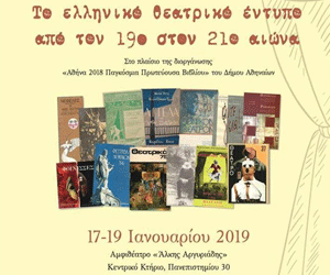 Tο Τμήμα Θεατρικών Σπουδών του Πανεπιστημίου Αθηνών διοργανώνει Επιστημονικό Συνέδριο με τίτλο: «Το ελληνικό θεατρικό έντυπο από τον 19ο στον 21ο αιώνα». Οι εργασίες του Συνεδρίου θα θα πραγματοποιηθεί στο Κεντρικό Κτήριο του ΕΚΠΑ, στο Αμφιθέατρο «Άλκης Αργυριάδης», στις 17-18-19 Ιανουαρίου 2019. Αντικείμενο του συνεδρίου είναι η ανάδειξη των συνθηκών παραγωγής, κυκλοφορίας και πρόσληψης κάθε είδους έντυπης έκδοσης σχετικής με το θέατρο από τον 19ο αιώνα έως σήμερα. Η προσέγγιση που προτείνεται είναι ανοικτή και περιλαμβάνει ειδικά θεατρικά/θεατρολογικά περιοδικά και εφημερίδες, θεατρικά προγράμματα (μορφή, περιεχόμενο, εξέλιξη στον χρόνο, κ.λπ.), εκδότες και εκδοτικούς οίκους που διακρίθηκαν για την ιδιαίτερη προσφορά τους στην έκδοση θεατρικών έργων ή θεωρητικών κειμένων για το θέατρο, κλπ. Το συνέδριο ενδιαφέρεται ακόμη να διερευνήσει τις μεταβολές που η ψηφιακή ...