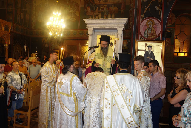 Την Τετάρτη 1 Αυγούστου πραγματοποιήθηκε στην Κατερίνη πάνδημη υποδοχή τεμαχίου ιερού λειψάνου του Οσίου και Θεοφόρου Πατρός ημών Διονυσίου του εν Ολύμπω, Προστάτου και Εφόρου πάσης Πιερίας. Η υποδοχή έλαβε χώρα ενώπιον του Ιερού Ναού Αγίου Θεράποντος από τον Σεβασμιώτατο Μητροπολίτη Κίτρους, Κατερίνης και Πλαταμώνος κ. Γεώργιο. Στη συνέχεια σχηματίστηκε λιτανευτική πομπή προς τον Ιερό Ναό Παναγίας Παντάνασσας. Εκεί το ι. λείψανο τοποθετήθηκε δίπλα στην εικόνα της Παναγίας Οδηγήτριας, έργο του Φώτη Κόντογλου, που φυλάσσεται στον Ιερό Ναό. Στη συνέχεια τελέστηκε σύντομη δέηση. Πριν την απόλυση ο Σεβασμιώτατος κ. Γεώργιος τέλεσε τη χειροθεσία του διακονητή της Ενορίας Γεωργίου Κουδουνά, απόφοιτου λυκείου. Το βράδι της ίδιας ημέρας τελέστηκε Αγρυπνία. Να σημειωθεί ότι η μεταφορά του λειψάνου του Αγίου Διονυσίου κατά το Δεκαπενταύγουστο στον Ιερό ...