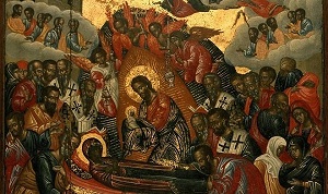 Τον Αύγουστο η Εκκλησία εορτάζει το τέλος της επίγειας ζωής της Παναγίας, τον θάνατό της, γνωστό ως Κοίμηση, μια λέξη όπου το όνειρο, η μακαριότητα, η ειρήνη, η ηρεμία και η χαρά ενώνονται. Τίποτε δεν γνωρίζουμε για τις συνθήκες που περιβάλλουν τον θάνατο της Παναγίας, της μητέρας του Χριστού. Διάφορες ιστορίες, διανθισμένες με παιδική αγάπη και τρυφεράδα, έχουν φθάσει ως εμάς από τον πρώιμο Χριστιανισμό, αλλά, ακριβώς λόγω της ποικιλίας τους, δεν νιώθουμε υποχρέωση να υπερασπιστούμε την “ιστορικότητα” καμιάς απ’ αυτές. Στην Κοίμηση, η αγάπη και η μνημόνευση της Εκκλησίας δεν επικεντρώνονται στο ιστορικό και πραγματικό πλαίσιο, ούτε στην ημερομηνία και στον τόπο όπου αυτή η μοναδική γυναίκα, αυτή η Μητέρα όλων των μητέρων, ολοκλήρωσε την επίγεια ζωή της. Οποτεδήποτε και ...