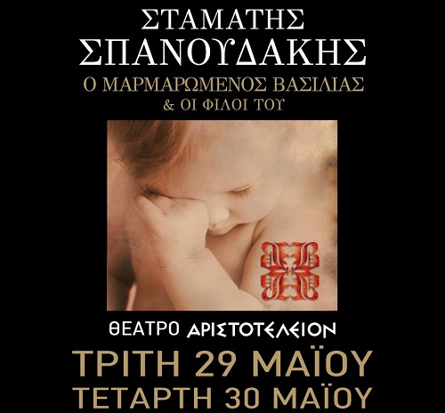 Συναυλίες στη Θεσσαλονίκη – 29 και 30 Μαΐου 2018 Δύο μεγάλες συναυλίες με τον τίτλο «Ο Μαρμαρωμένος Βασιλιάς και οι φίλοι του» θα δώσει ο Σταμάτης Σπανουδάκης στο Θέατρο Αριστοτέλειον της Θεσσαλονίκης την Τρίτη 29 και την Τετάρτη 30 Μαΐου 2018, με την ευγενική χορηγία της εταιρείας MYTILINEOS. «Νομίζω ότι ο τίτλος αυτός περιέχει όλα όσα, χωρίς νότες, θα ήθελα να σας πω. Τρίτη 29 Μαΐου 2018. Πόσα χρόνια μετά την Άλωση της γλυκιάς Πόλης! Ο χρόνος, όμως, που περνάει, λίγο με αφορά. Η αγάπη που ‘χω χαραγμένη στη ψυχή μου για τον Κωνσταντίνο Παλαιολόγο, την Πόλη, τον Αλέξανδρο, τη Σμύρνη και τη Μητέρα Ελλάδα, ξεπερνάει κάθε χρόνο, κάθε χώρο, και με φέρνει εδώ παρόντα, την κατάλληλη στιγμή κοντά σας. Δόξα τω Θεώ ...
