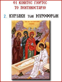 Η δεύτερη Κυριακή μετά το Πάσχα είναι αφιερωμένη στις Μυροφόρες σ’ εκείνες τις γυναίκες οι οποίες, τηρώντας τα ιουδαϊκά έθιμα πήγαν να μυρώσουν το νεκρό σώμα του δασκάλου τους, του Ιησού. Ο Κύριός μας, όπως τουλάχιστον γνώριζαν οι γυναίκες αυτές, είχε αποκαθηλωθεί από τον Σταυρό από τον Ιωσήφ, που ήταν άρχοντας στην περιοχή της Ιουδαίας που ονομαζόταν Αριμαθαία. Ο άρχοντας αυτός ζήτησε την άδεια από τον Πιλάτο να πάρει το σώμα του Ιησού και να το ενταφιάσει. Πράγματι, το πήρε και το έβαλε σε έναν τάφο, όπου κανένας δεν είχε ταφεί μέχρι τότε. Εδώ, παιδιά, θα πούμε ότι δεν πρέπει να έχουμε στον νου μας έναν τάφο σαν αυτούς που υπάρχουν σήμερα στα χριστιανικά κοιμητήρια, τα νεκροταφεία. Οι Ιουδαίοι, και γενικότερα οι ...
