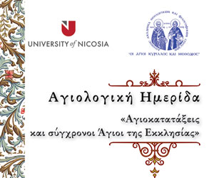 Το Τμήμα Θεολογίας του Πανεπιστημίου Λευκωσίας και η Διεθνής Ακαδημία Θεολογικών και Φιλοσοφικών Σπουδών «Οι Άγιοι Κύριλλος και Μεθόδιος», πραγματοποιούν Επιστημονική Ημερίδα, με θέμα: «Αγιοκατατάξεις και σύγχρονοι Άγιοι της Εκκλησίας». Η Ημερίδα θα πραγματοποιηθεί στο Κέντρο Μελέτης του Τμήματος Θεολογίας του Πανεπιστημίου Λευκωσίας (Κέντρο Νεότητος «Αγία Κυράννα», Μεγάλου Αλεξάνδρου 25, Λαγκαδάς), την Τρίτη, 24 Απριλίου 2018, στις 10:00 π.μ. και τα θέματα της θα εισηγηθούν έγκριτοι Καθηγητές των Θεολογικών Σχολών Αθηνών, Θεσσαλονίκης και του Τμήματος Θεολογίας του Πανεπιστημίου Λευκωσίας. Η Επιστημονική Ημερίδα εντάσσεται μέσα στα πλαίσια της λειτουργίας του εγκεκριμένου, από τους αρμοδίους Κρατικούς Φορείς, Προγράμματος Μεταπτυχιακών και Διδακτορικών Σπουδών του Πανεπιστημίου Λευκωσίας, σε συνεργασία με την Διεθνή Ακαδημία Θεολογικών και Φιλοσοφικών Σπουδών «Οι Άγιοι Κύριλλος και Μεθόδιος», της Ιεράς Μητροπόλεως Λαγκαδά, Λητής και Ρεντίνης.