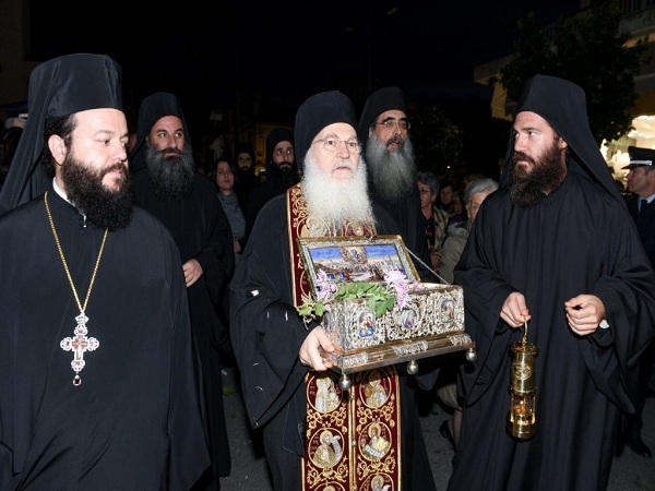 Με τιμές αρχηγού κράτους εξήλθε η Τιμία ζώνη της Υπεραγίας Θεοτόκου από το Άγιον Όρος, προκειμένου να τεθεί για προσκύνηση στο χριστεπώνυμο πλήρωμα της Ελλαδικής επικράτειας στις μητροπόλεις Νέας Ιωνίας, Λαρίσης και Αιτωλοακαρνανίας. Στις 3 Νοεμβρίου έγινε η υποδοχή της από τον Σεβασμιώτατο Μητροπολίτης Νέας Ιωνίας κ. Γαβριήλ ο οποίος με πλήθος κλήρου και λαού προϋπάντησε το μόνο υπάρχον κειμήλιο από την επίγεια ζωή της Παναγίας, μαζί με τον σεβαστό Καθηγούμενο της Ι.Μ.Μ. Βατοπαιδίου, Γέροντα Εφραίμ. Για να δείτε την υποδοχή της Τιμίας ζώνης της Θεοτόκου πατήστε στην διεύθυνση: http://www.pemptousia.gr/?p=174796 Σήμερα Δευτέρα 6 Νοεμβρίου στις 20.30 στον Ιερό Ναό των Αγίων Αναργύρων Νέας Ιωνίας θα τελεσθεί Αγρυπνία παρόντος του Γέροντος Εφραίμ κατά την οποία η Τιμία Ζώνη θα εκτίθεται συνεχώς προς προσκύνηση.