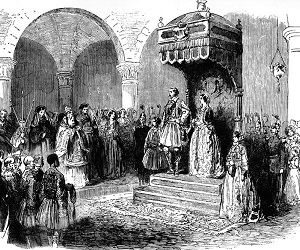 Η πολιτική κατάσταση Ποιο ήταν, όμως, το πολιτικό κλίμα που επικρατούσε τον κρίσιμο εκείνο χρόνο του 1839 και επηρέαζε καταλυτικά τους σχεδιασμούς και τις προτεραιότητες των πολιτικών παραγόντων της ελληνικής επικράτειας, τόσο στο εσωτερικό μέτωπο όσο και στο εξωτερικό; Ποιες ήταν οι ευρύτερες διεθνείς ισορροπίες, πως είχαν διαμορφωθεί στον μείζονα χώρο της Νοτιοανατολικής Ευρώπης και ποιες δυνάμεις επηρέαζαν ουσιαστικά τα δρώμενα στο ελληνικό κράτος; Χαρακτικό από τον ξένο τύπο της εποχής με φανταστική αναπαράσταση του Όθωνα και της συνοδείας του, στον Μητροπολιτικό Ναό των Αθηνών. Ο προσανατολισμός της ελληνικής κυβέρνησης ήταν φιλορωσικός και το πρόσωπο-κλειδί στις εσωτερικές διεργασίες και τις διοικητικές πρωτοβουλίες ήταν ο γραμματέας (υπουργός) των Εσωτερικών, Γεώργιος Γλαράκης. Σημαντικό ρόλο επίσης έπαιζε και ο γραμματέας των Εξωτερικών Κωνσταντίνος Ζωγράφος, πολιτικός ...