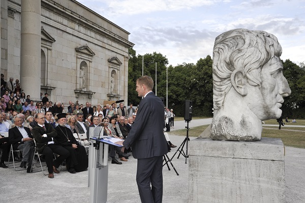 Μια αξιοζήλευτη και αξιοθαύμαστη έκθεση στο Μόναχο Μια αξιοζήλευτη και αξιοθαύμαστη έκθεση με θέμα "Κεφαλές φανερώνουν τον χαρακτήρα, Έλληνες και Ρωμαίοι σε πορτραίτα" λαμβάνει χώρα τις ημέρες αυτές στην παγκοσμίου φήμης Γλυπτοθήκη του Μονάχου. Tα επίσημα εγκαίνια της έκθεσης έγιναν από τον διευθυντή της Γλυπτοθήκης κ. Φλόριαν Κνάους. Στο προαύλιο της Γλυπτοθήκης, κάτω από το γαλανό ουρανό της Βαυαρίας, παρουσία πλήθους βαυαρών ο κ. Κνάους χαιρέτησε όλους τους παρόντες και αναφέρθηκε διεξοδικά στο σκεπτικό και τη θεματολογία της έκθεσης, ενώ ο επιστημονικός συνεργάτης και συντηρητής κ. Δρ. Χρίστιαν Γκλιβίτσκι παρουσίασε μερικά πορτραίτα Ελλήνων και Ρωμαίων και ανέλυσε, με πολύ γλαφυρό τρόπο, τον χαρακτήρα των προσώπων αυτών, όπως αυτός αποτυπώθηκε από τους γλύπτες στις μαρμάρινες κεφαλές τους και στα αγάλματά τους. Φωτογραφίες: Ρενάτε Κίλινγκ Μετά ...