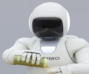 Το μέλλον των ρομπότ Τα σύγχρονα ρομπότ έχουν μηχανικές και νοητικές ικανότητες που προηγουμένως ανήκαν στη σφαίρα επιστημονικής φαντασίας. Η ανάπτυξή τους θα συνεχίσει να επεκτείνεται με ολοένα νέα είδη ρομπότ κατάλληλα για τη βιομηχανία, την επιστήμη και την καθημερινή ζωή του ανθρώπου. Ήδη σήμερα υπάρχουν ιπτάμενα μη επανδρωμένα οχήματα-ρομπότ, ρομποτικοί οδηγοί (ρομποτικά μπαστούνια) τυφλών, ρομπότ ποδοσφαιριστές, πολύποδα ρομπότ ανίχνευσης ηφαιστείων, σμήνη συνεργαζόμενων ρομπότ, ρομποτικά έντομα, κοκ. Η έρευνα και ανάπτυξη προς την κατεύθυνση αυτή συνεχίζεται αδιάκοπα έχοντας ως βασική προτεραιότητα την ασφάλεια και άνεση του ανθρώπου και την απαλλαγή του από δύσκολες, επίπονες και επικίνδυνες εργασίες. Το ανθρωποειδές ρομπότ Asimo βάζει χυμό σε χάρτινο κυπελλάκι. Στο μέλλον ο άνθρωπος πιθανά θα ζει ανάμεσα στα ρομπότ στο σπίτι, το δρόμο, την εργασία, ...