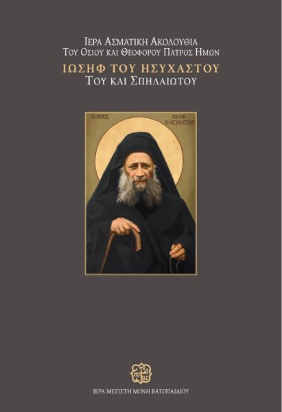 Κυκλοφορεί σε χαρτόδετη έκδοση 168 σελίδων από την Ιερά Μεγίστη Μονή Βατοπαιδίου, η Ιερά Ασματική Ακολουθία του Οσίου και Θεοφόρου Πατρός ημών Ιωσήφ του Ησυχαστού του και Σπηλαιώτου, ποίημα του μακαριστού Γέροντος Ιωσήφ Βατοπαιδινού. ΤΙΤΛΟΣ: ΙΕΡΑ ΑΣΜΑΤΙΚΗ ΑΚΟΛΟΥΘΙΑ ΤΟΥ ΟΣΙΟΥ ΚΑΙ ΘΕΟΦΟΡΟΥ ΠΑΤΡΟΣ ΗΜΩΝ ΙΩΣΗΦ ΤΟY ΗΣΥΧΑΣΤOY ΤΟΥ ΚΑΙ ΣΠΗΛΑΙΩΤΟΥ – ΠΟΙΗΜΑ ΓΕΡΟΝΤΟΣ ΙΩΣΗΦ ΒΑΤΟΠΑΙΔΙΝΟΥ ΕΚΔΟΤΗΣ: Ιερά Μεγίστη Μονή Βατοπαιδίου ΣΧΗΜΑ: 17 x 24 εκ. ΣΕΛΙΔΕΣ: 168 ΒΙΒΛΙΟΔΕΣΙΑ: ΧΑΡΤΟΔΕΤΟ ΤΙΜΗ: 7€ ISBN: 978-618-5501-09-9 Για παραγγελίες πατήστε εδώ