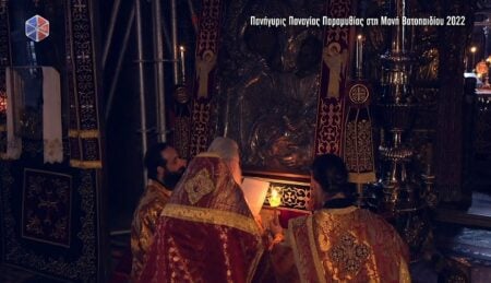 Στιγμιότυπα από την Θεία Λειτουργία κατά την εορτή της Παναγίας Παραμυθίας και του Αγίου Μαξίμου του Γραικού στην Ιερά Μεγίστη...