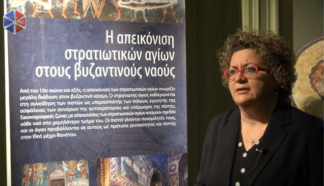 Η Φλώρα Καραγιάννη, Διευθύντρια του του Ευρωπαϊκού Κέντρου Βυζαντινών και Μεταβυζαντινών Μνημείων μας ξεναγεί στην Έκθεση «Οι στρατιωτικοί Άγιοι στο Βυζάντιο» η οποία εγκαινιάστηκε την Τρίτη 27 Οκτωβρίου 2020 στη Δημοτική Πινακοθήκης Θεσσαλονίκης – Casa Bianca, από την Πρόεδρο της Ελληνικής Δημοκρατίας κυρία Κατερίνα Σακελλαροπούλου παρουσία του Υφυπουργού Μακεδονίας Θράκης κυρίου Θεόδωρου Καράογλου ως εκπροσώπου της Κυβέρνησης και του Υφυπουργού Εθνικής Άμυνας κυρίου Αλκιβιάδη Στεφανή. Λεπτομέρειες για την Έκθεση βλέπε εδώ και εδώ