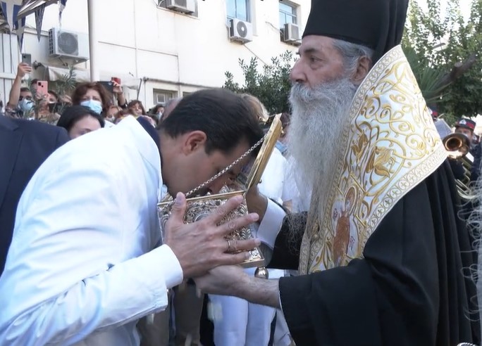 Στη συγκινητική υποδοχή της Ιεράς εικόνος της Παναγίας της Οδηγητρίας (σ.σ. αντίγραφο της εικόνος), στην επικείμενη πανήγυρη του Καθεδρικού ναού Παναγίας Ελευθερωτρίας...