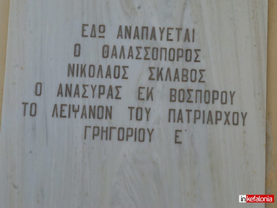 Το Ιερό Μνημόσυνο του Κεφαλλονίτη πλοιάρχου Νικολάου Σκλάβου και των μελών του πληρώματος του πλοίου, που μετέφερε το σκήνωμα του...