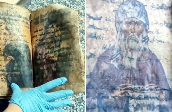 A Syriac Bible written on gazelle skin, which was stolen after the looting of a museum in Aleppo, was found...