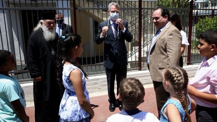US Ambassador Geoffrey Pyatt and Archbishop Ieronymos of Athens and All Greece paid a visit to the ‘Dimitrio’ Center for...