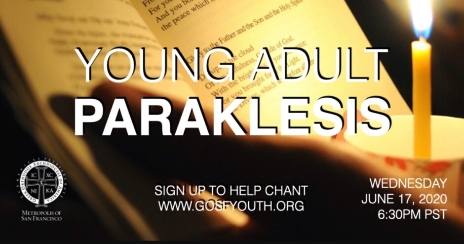 Young Adults are welcome to join in prayer and chant and online Paraklesis service to the Theotokos, Wednesday, June...