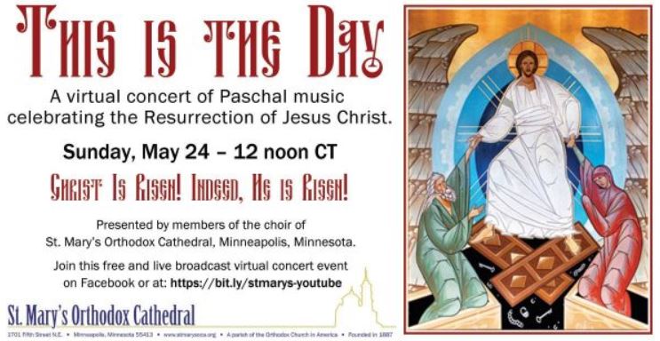 Minneapolis, MN – The choir of St. Mary’s Orthodox Cathedral will present a virtual concert of Paschal music on Sunday, May...