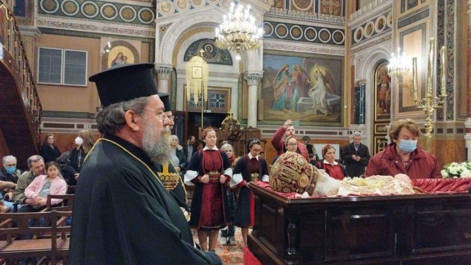 Με δάκρυα στα μάτια, περίσσια συγκίνηση, κλάδους από δάφνες και λουλούδια και απόδοση τιμών υποδέχθηκαν το σκήνωμα του μακαριστού Αρχιεπισκόπου...