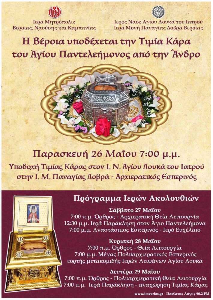 Η Μητρόπολη Βεροίας, Ναούσης και Καμπανίας στο πλαίσιο της 5ης Ιατρικής Εβδομάδας του Αγίου Λουκά του Ιατρού υποδέχεται την Τιμία Κάρα...