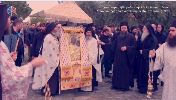 Στην Ιερά Μεγίστη Μονή Βατοπαιδίου τελέστηκε την Διακαινήσιμο Εβδομάδα η Λιτανεία της ιεράς Εικόνος της Παναγία Βηματαρίσσης. Της ιεράς Λιτανείας...