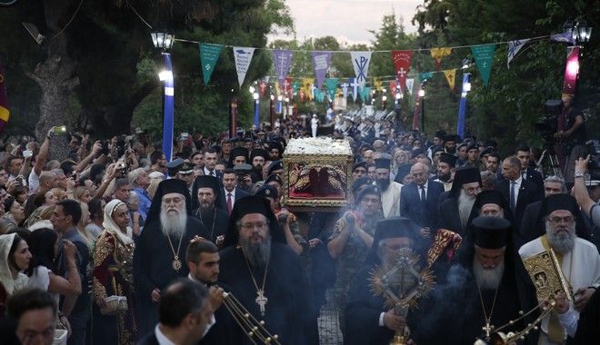 Το λείψανο της Αγίας Ελένης κατέφθασε στην Αθήνα από τη Βενετία και έγινε δεκτό από τον Αρχιεπίσκοπο Ιερώνυμο και τον...