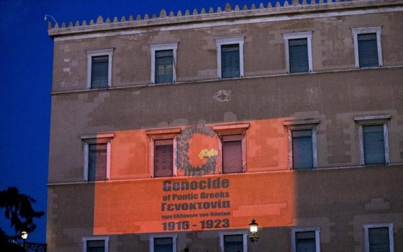 Η Βουλή φωταγώγησε την πρόσοψη του κτηρίου της με το συμβολικό λογότυπο-μήνυμα για την Ημέρα Μνήμης της Γενοκτονίας των Ελλήνων...